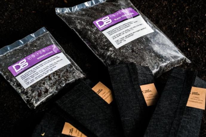 - Composition (ex. Pack 4 graines) : 4 Pots Géotextile Root Pouch 1L, 2Kg de Terreau 100% compost (soit 50L), 250g de Lombricompost.