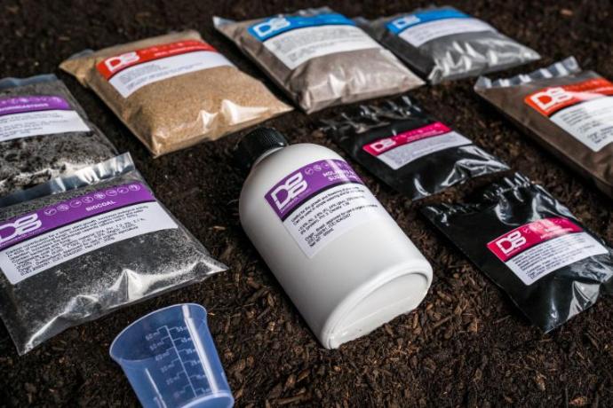 - Composition (ex. Pack 50L) : 2kg Lombricompost, 250g Biochar, 250g Guano de Vers de Farine, 250g Cendres de Coques de Ricin floraison, 250g Karanja, 500g Zéolithe, 500g Basalte Volcanique, 1g Bacillus Amyloliquefaciens 5X, 1g Endomycorhizes RHIZOPHAGUS IRREGULARIS, 100ml Mélasse de canne bio + Verre doseur.